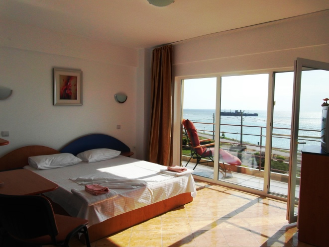 * Situata pe malul Marii Negre la 35 de metri de plaja. O frumoasa ocazie de a admira rasaritul Soarelui din camera sau balcon, chiar din pat, cat si stralucirea Lunii pe luciul de apa al Marii Negre.